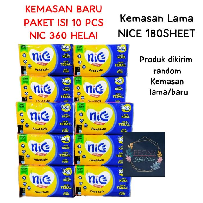 PAKET TISSUE NICE 360 HELAI ISI 10 PACK/TISU WAJAH SERBAGUNA NICE 360 HELAI X 10 PAK