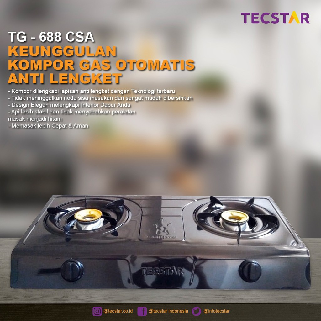 TECSTAR Kompor Gas 2 Tungku Stainless Optimax Teraflon Anti Lengket SNI TG688CSA