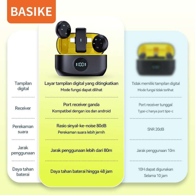 BASIKE Mic Nirkabel Clip On Mikrofon Lavalier Lapel Noise Cancelling Magnetic for Video Recording