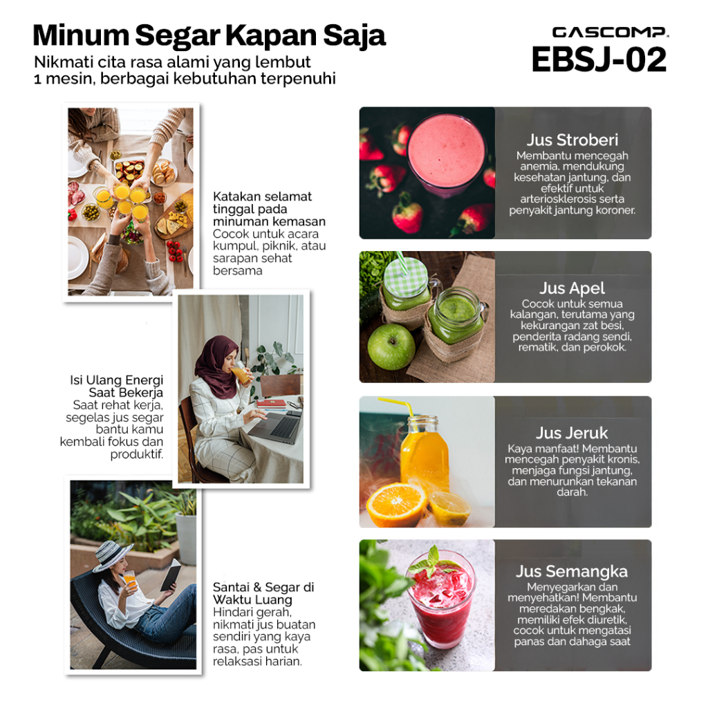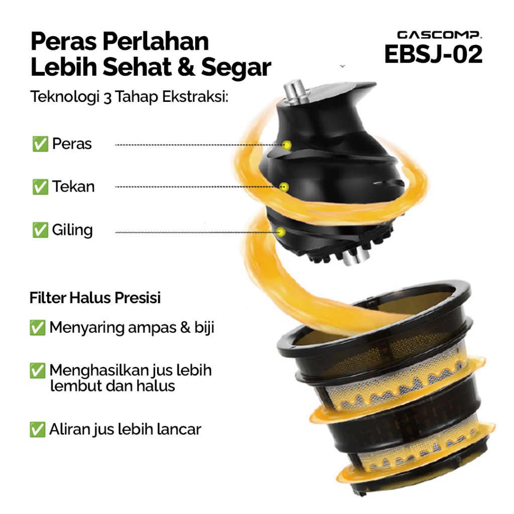 GASCOMP Slow Juicer EBSJ-02 | Juicer Cold Press 0.8L, 100W, Extra Wide Mouth 103mm, Jus Jernih, Ampas Kering, Easy Clean