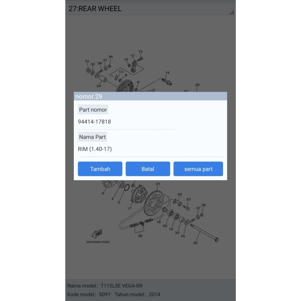 Velk Velg Rim Hitam DID 140-17 / 250-17 Vega ZR Vega RR PNP FIZR Vega Jupiter All Motor Ring 17 Original Yamaha 94414-17818