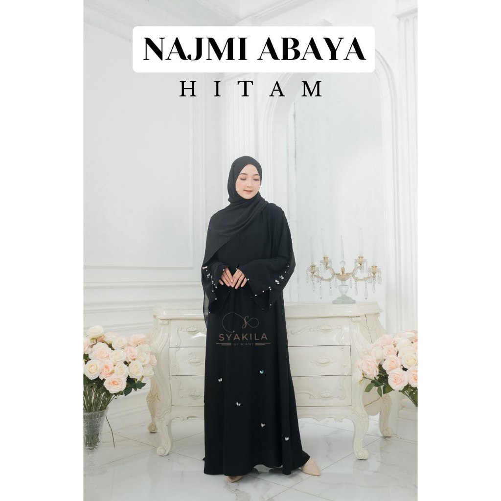 Baju Gamis Abaya Najmi Abaya Arab Hitam Jatblack Premium Swarovski Terbaru Kekinian