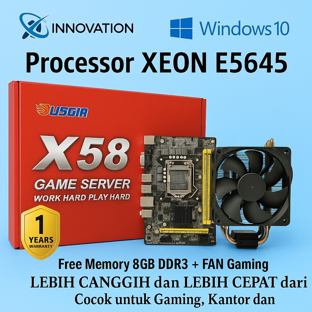 Motherboard Server Processor Xeon E5645 Free Memory 8GB DDR3 + Fan Gaming Garansi 1 Tahun