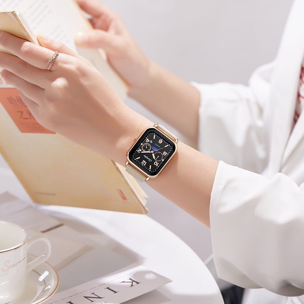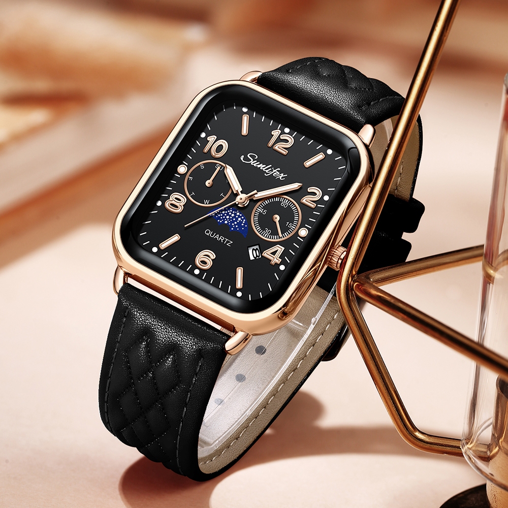 Jam Tangan Wanita Sunlifex Korean Kasual Mode Tali Kulit Kuarsa Jam Tangan Cewek Original