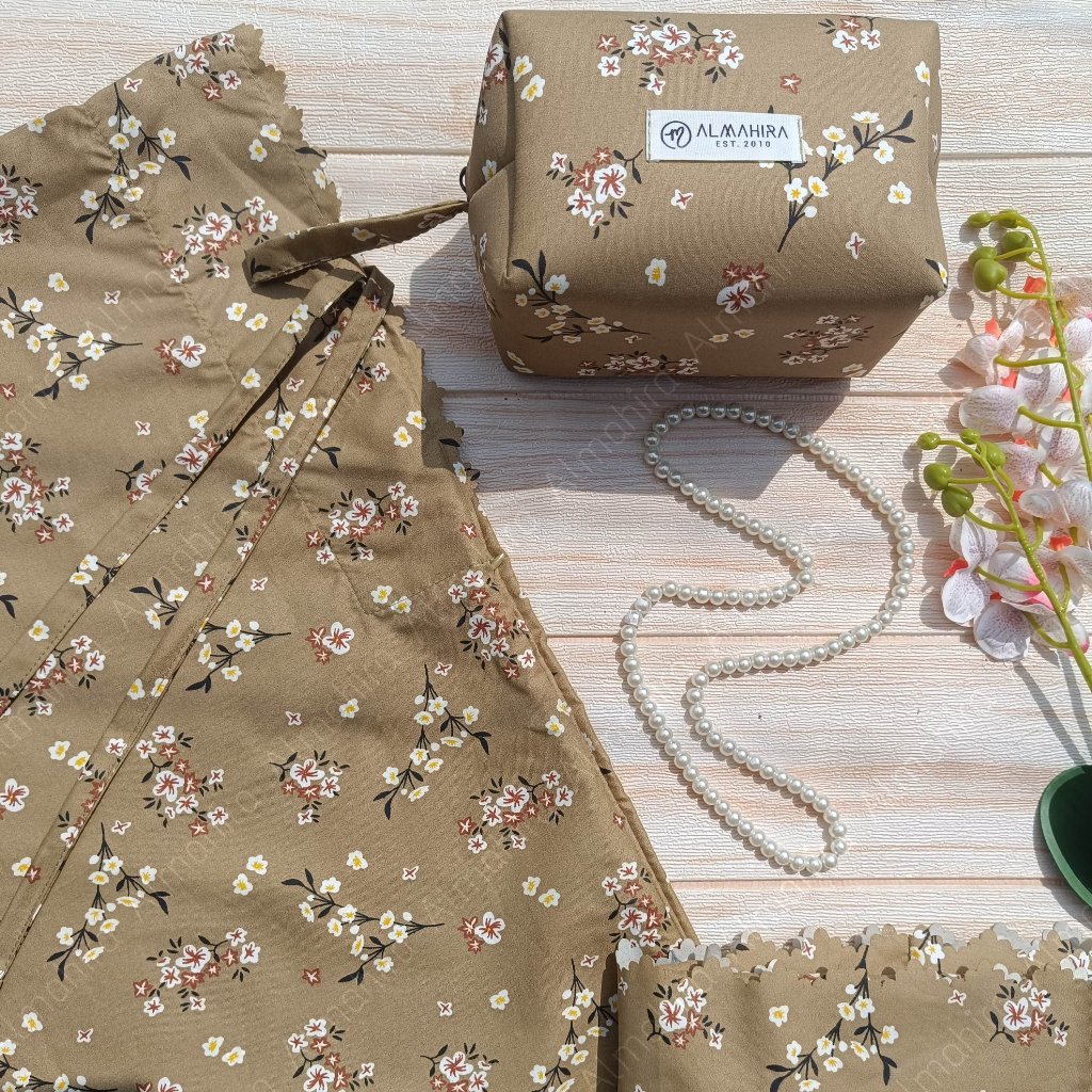 Mukena FLORA Series Laser Cut | Mukena Travelling Pouch Motif | Mukena 2in1 Motif Resleting Dagu by Almahira
