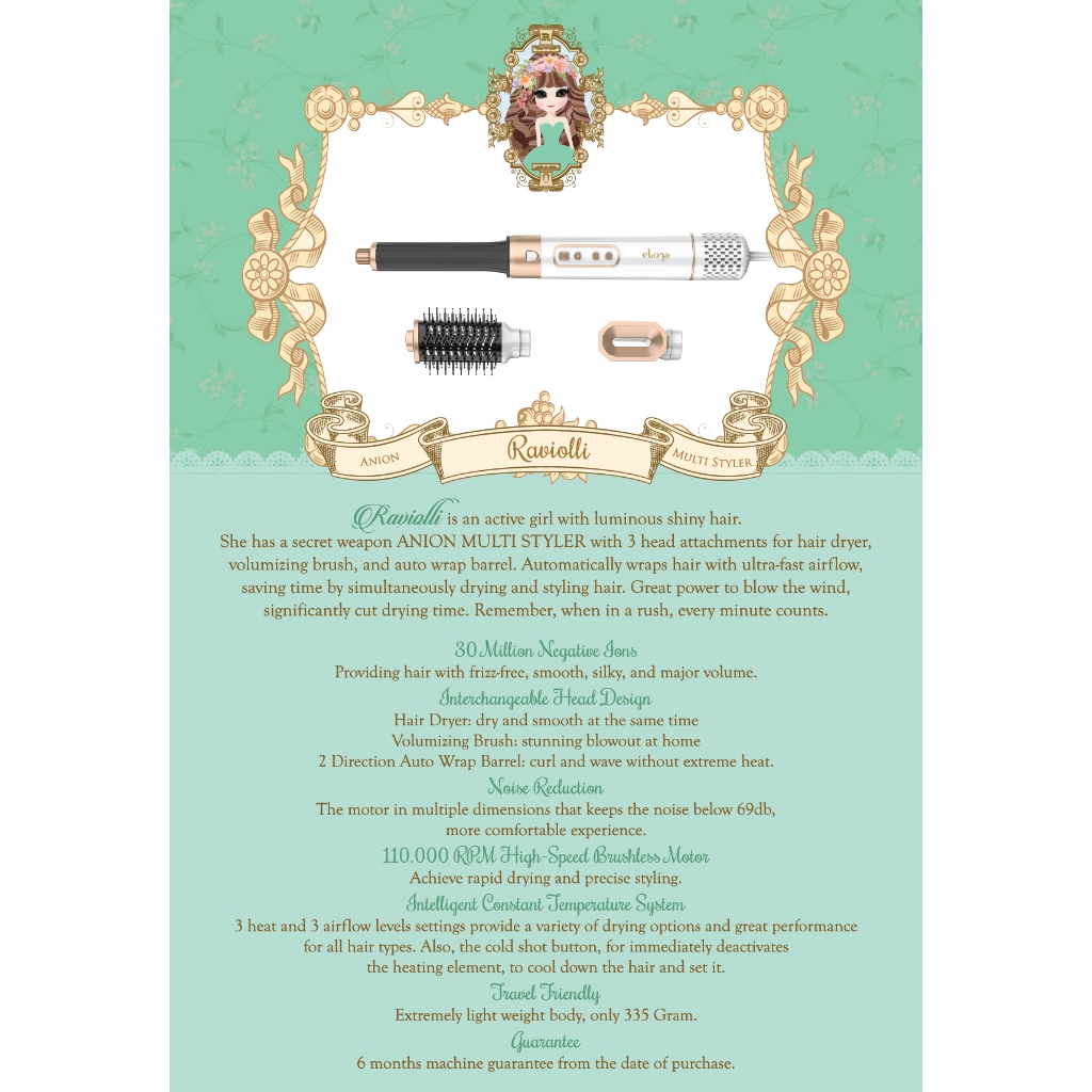 Elona Raviolli Anion Multi Styler ( pengering rambut ionic / bldc / supersonic / auto wrap )