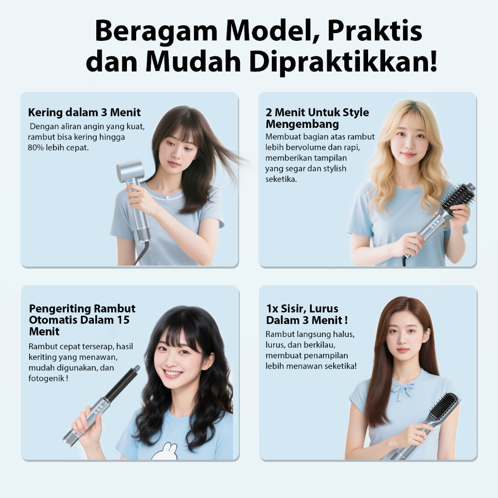 SAYOMI WT-634 Curly rambut 5 IN 1 Hair Dryer Catokan curly Hairdrayer rambut Blower Strong Wind Low Watt