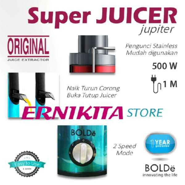 Juicer BOLDe SUPER JUPITER 500W Stainless Steel 2 Speed Food Grade Mudah Dibersihkan