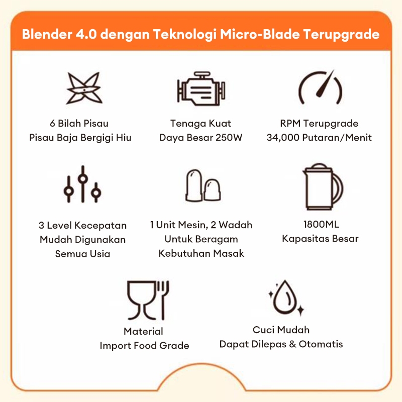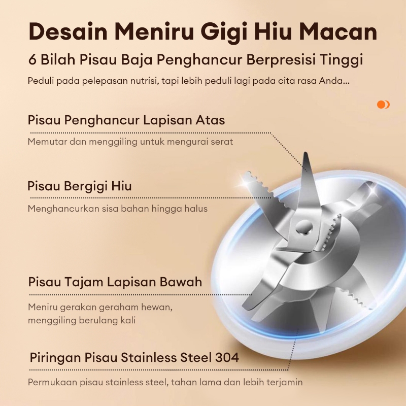 Tixx blender 1.8L Enam bilah blender 250W Multifungsi Daya rendah 250W 2 in 1 Juicer