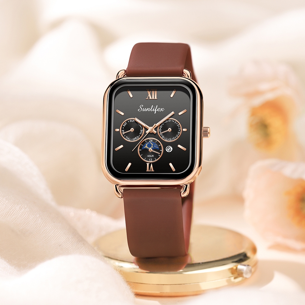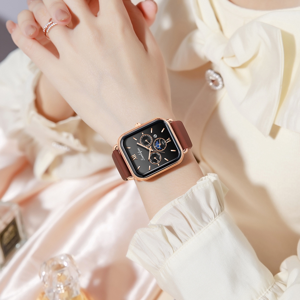 Jam Tangan Wanita Original Korea Elegan Sunlifex Kuarsa Bercahaya Tali Silikon B003