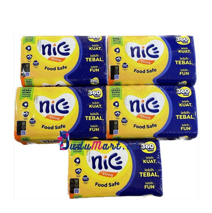 ( 5 PCS ) PAKET TISSUE NICE 360 HELAI KEMASAN BARU ISI 5 PCS