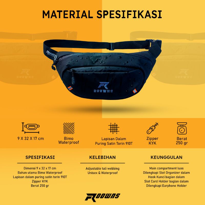 Tas Selempang Waistbag Distro Waterproof Phantom Pria Wanita Roowns Woven