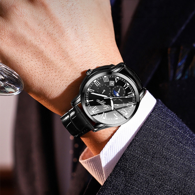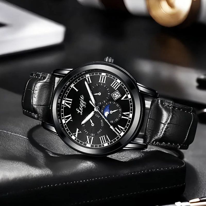 Jam Tangan Cowok Kalender Loggio Tahan Air Kuarsa Santai Bisnis Tali Kulit