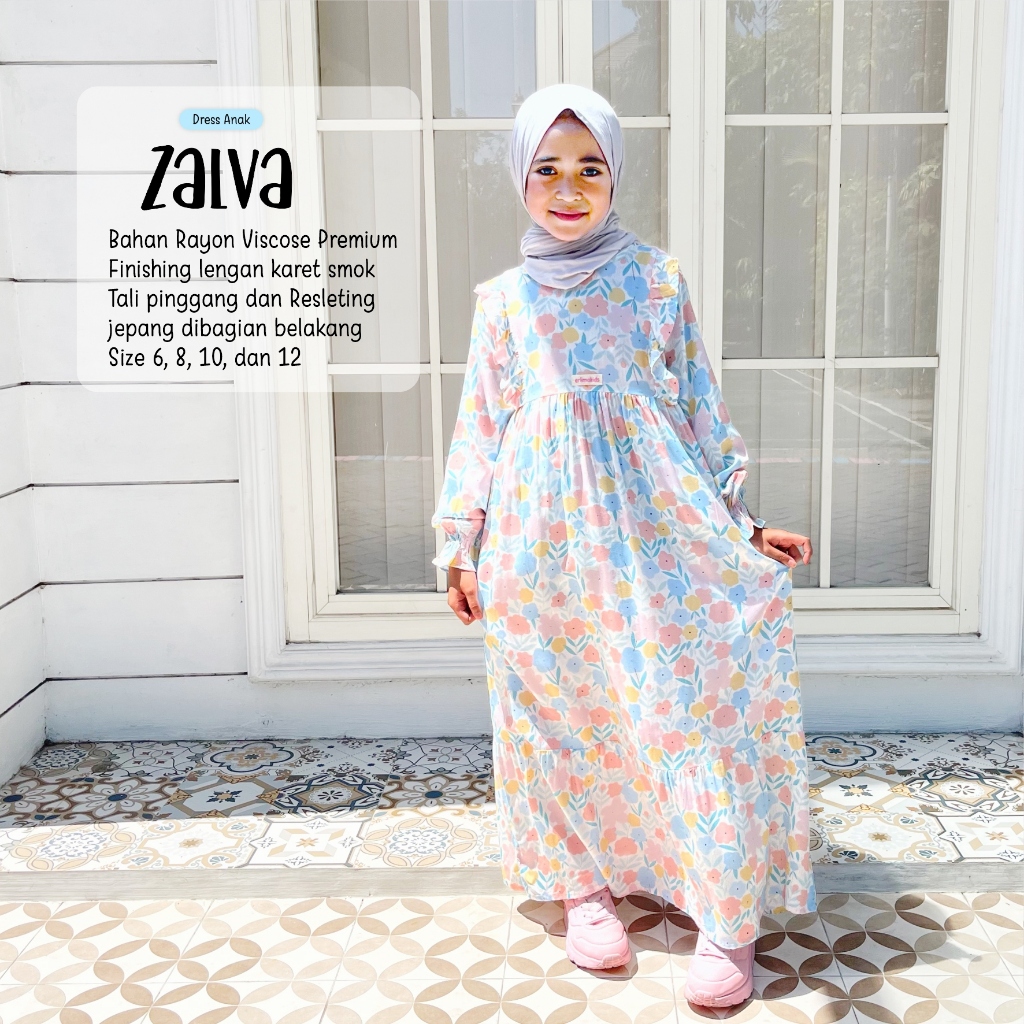 Gamis Anak Perempuan Erlimakids Motif Zaarah Lucu Cantik Usia 5 – 12 Adem Lembut Banyak Anak Suka