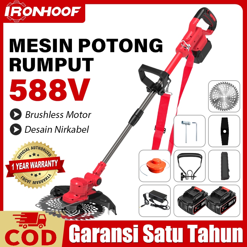 IRONHOOF 588V Brushless Mesin Potong Rumput Baterai 9 inci Potong Rumput Mesin Pemotong Rumput