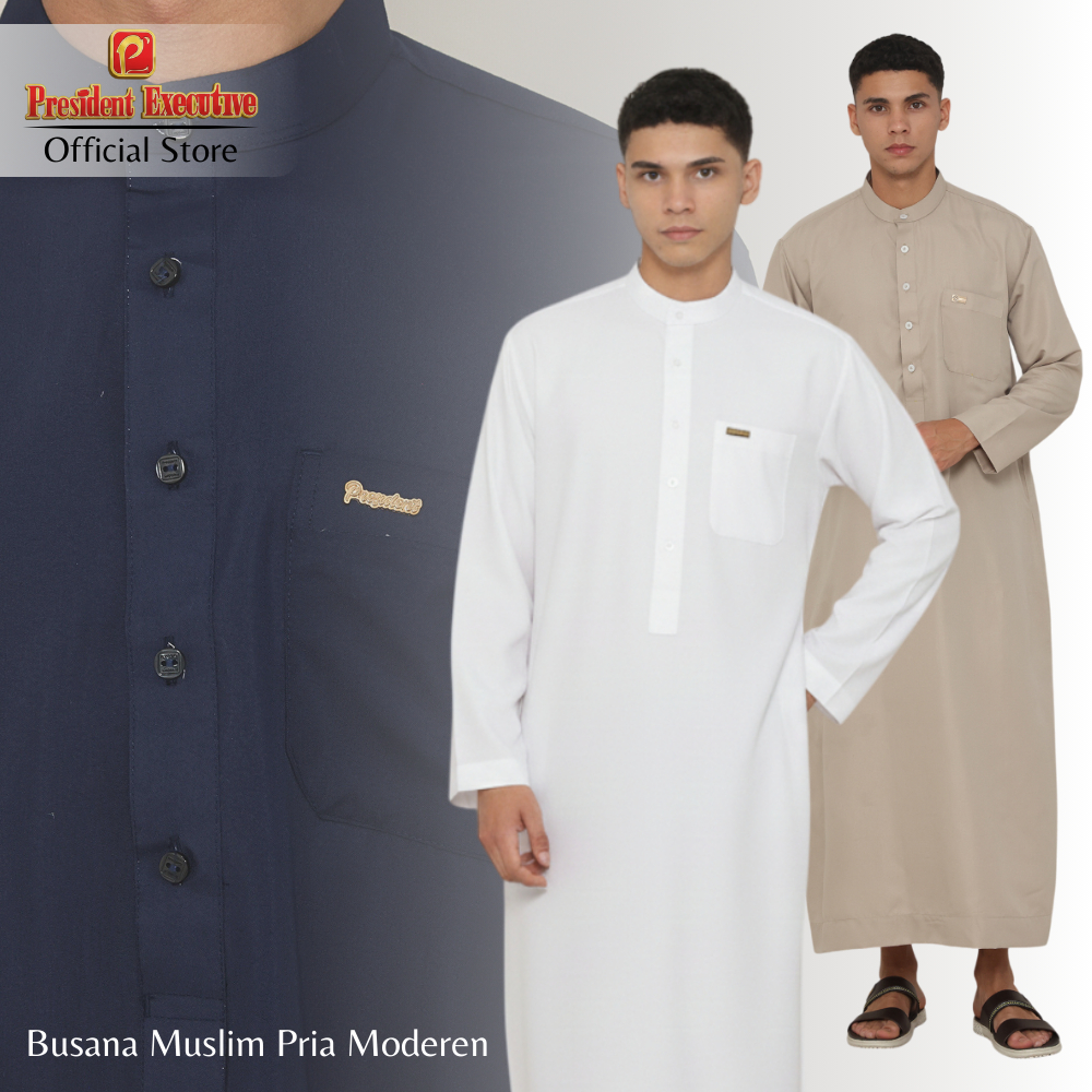 President Executive - Gamis Pria Jubah Laki Laki Polos Lengan Panjang Reguler Oblong Serie Alzam