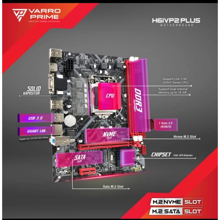 MOTHERBOARD GAMING H61 VP2 PLUS VARRO SUPPORT NVME RESMI