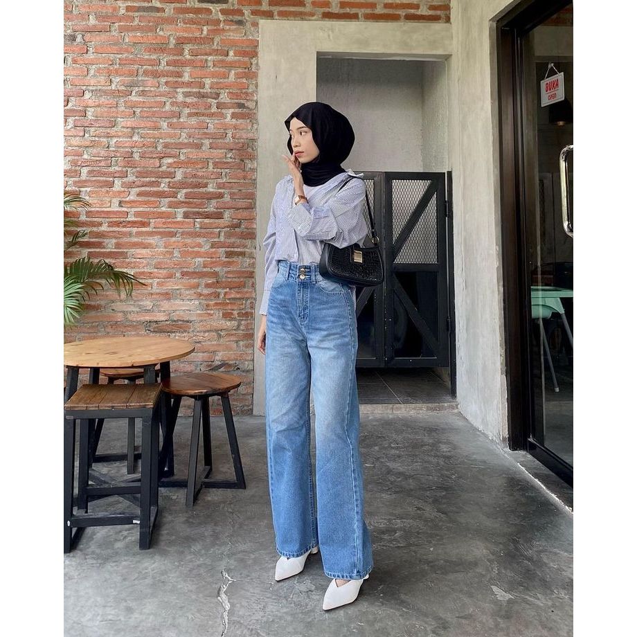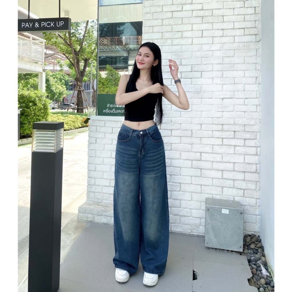 [ UNISEX ]Celana Jeans Panjang Gombrong Skena Style - Celana Jeans Wide Leg Whisker Korean Style - Celana Jeans Baggy Wh