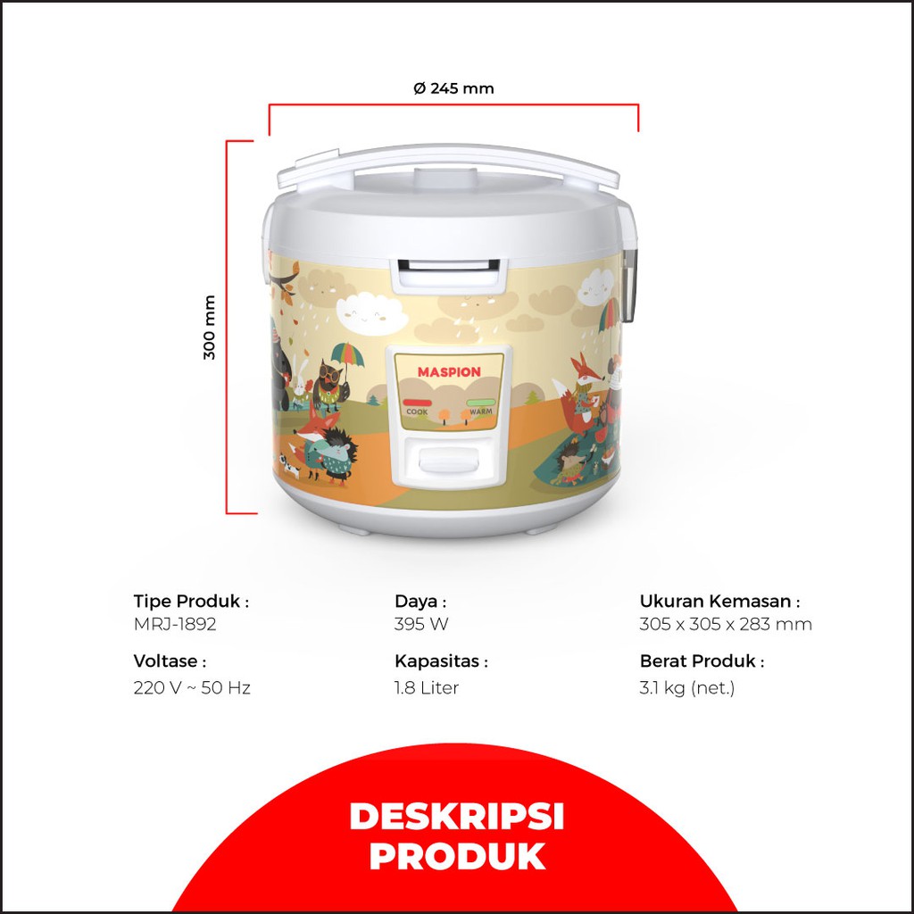 Maspion Rice Cooker Magic Com 1.8 Liter MRJ-1892 Diamond Series