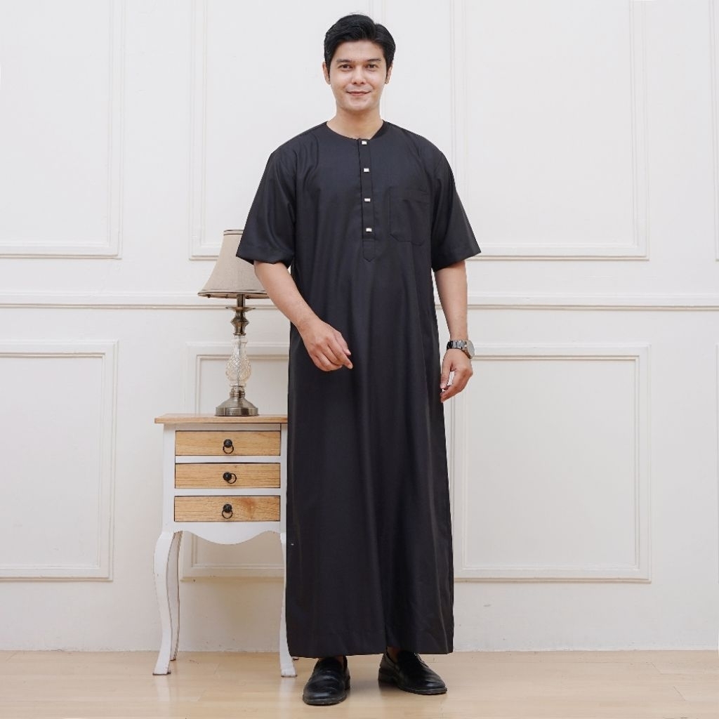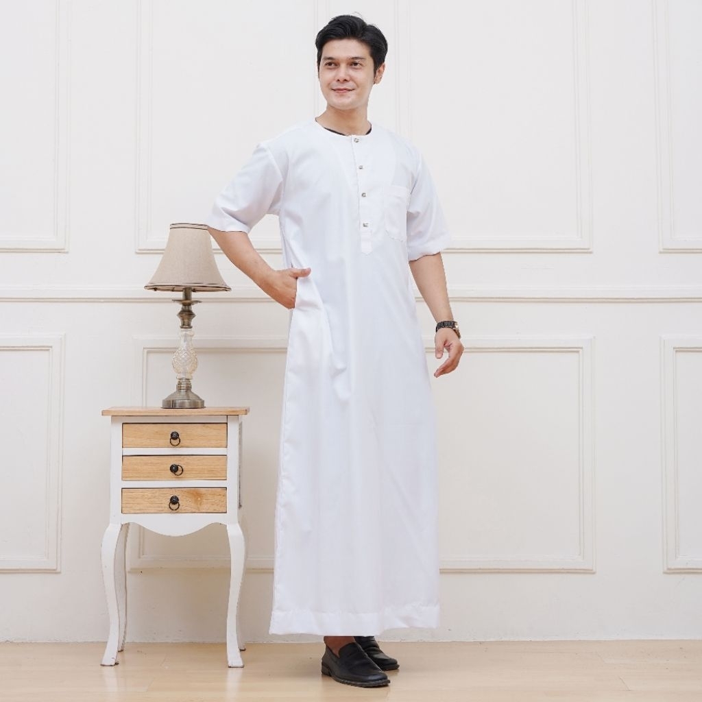 Gamis Pria Dewasa/Gamis Oman-Thobe kerah oblong Snap Button/Toyobo Lengan pendek