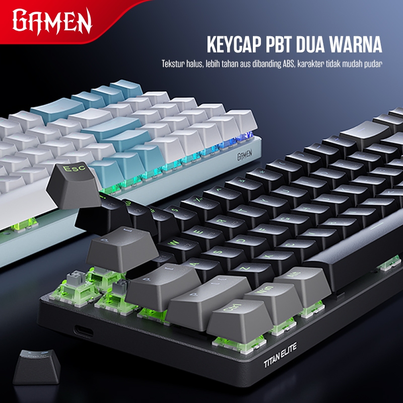GAMEN Titan Elite Keyboard Mechanical Wireless Gaming RGB 3 Pin Hot-Swappable 78 Keys 3 Mode Connection Bluetooth 5.0 /