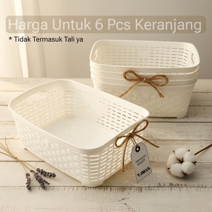 PAKET 6 Pcs - Keranjang Pita PUTIH Keranjang Penyimpanan Serbaguna Keranjang Segi Motif Anyam