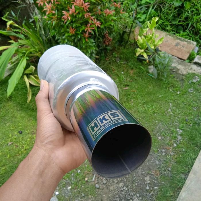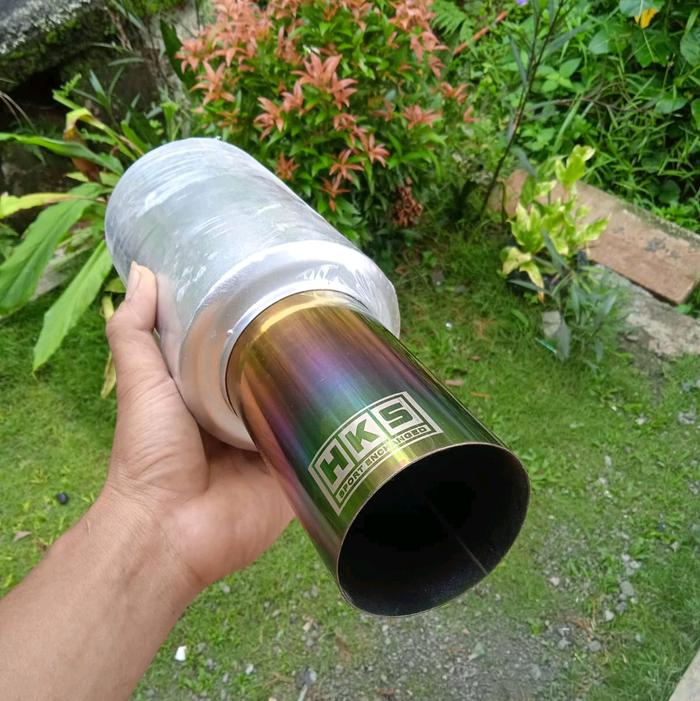 KNALPOT MOBIL RACING HKS BAS KERING GAHAR untuk semua jenis mobil Motorcycle Tabung - putih crom bass, jumlah