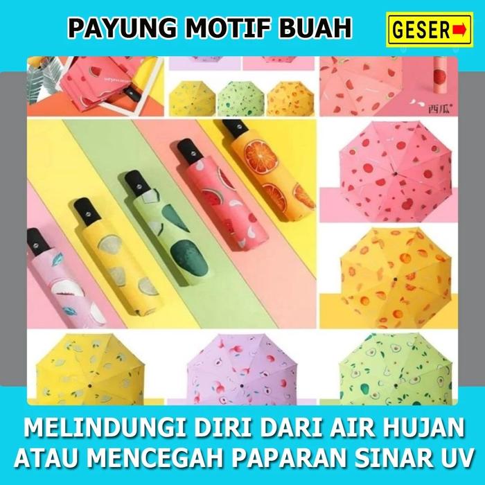 Payung Lipat Motif Buah Semangka Lemon Alpukat Jeruk Buah Peach Payung Manual Payung Anti UV - Peach