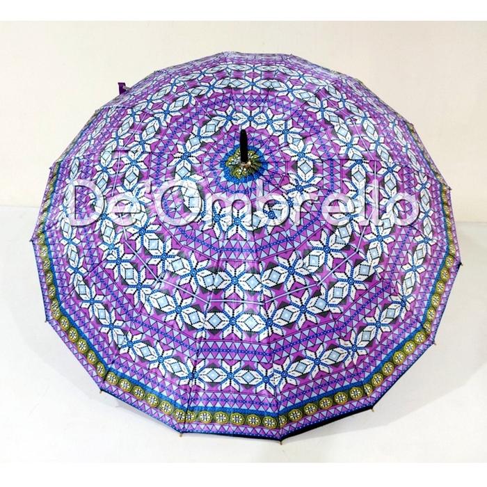 (066)Payung 16 Jari Bahan Saten Motif Batik Campur Handle kuning - Biru