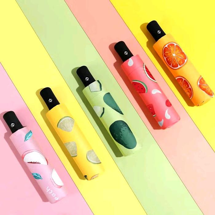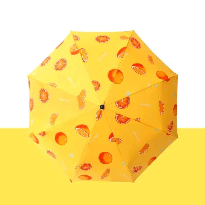 Payung Lipat Motif Buah TABASA Anti UV dengan Gagang Hitam 3D - jeruk