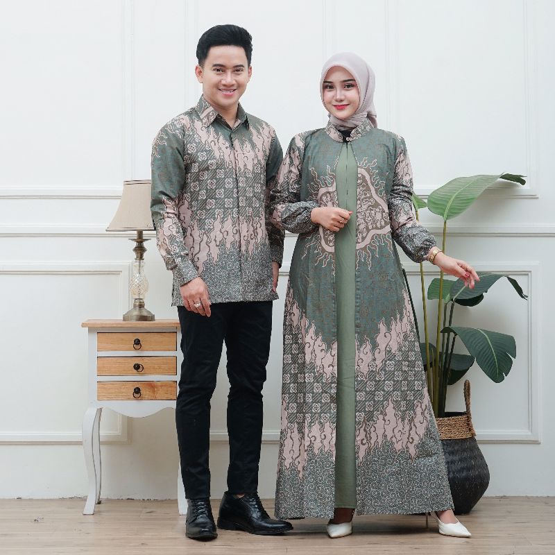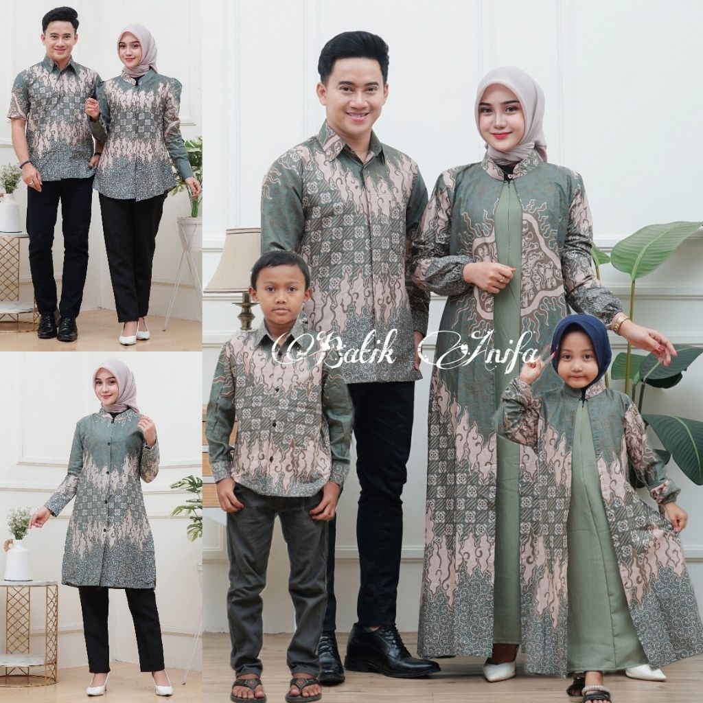 Batik Couple Keluarga Modern Terbaru Motif Seroja Sage
