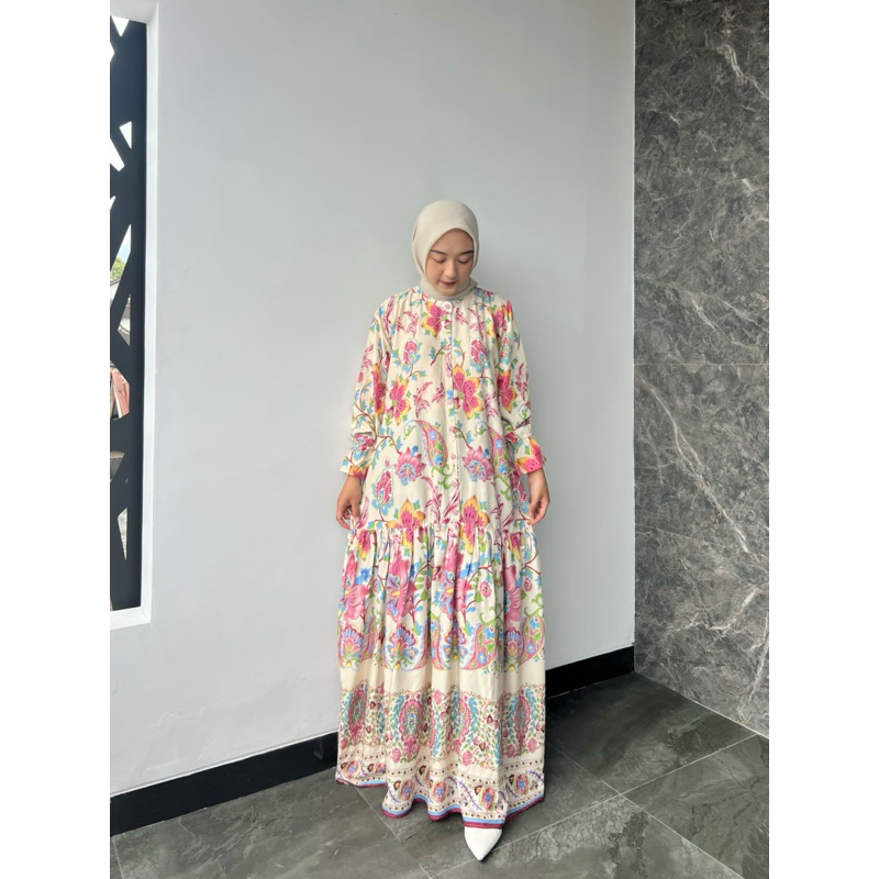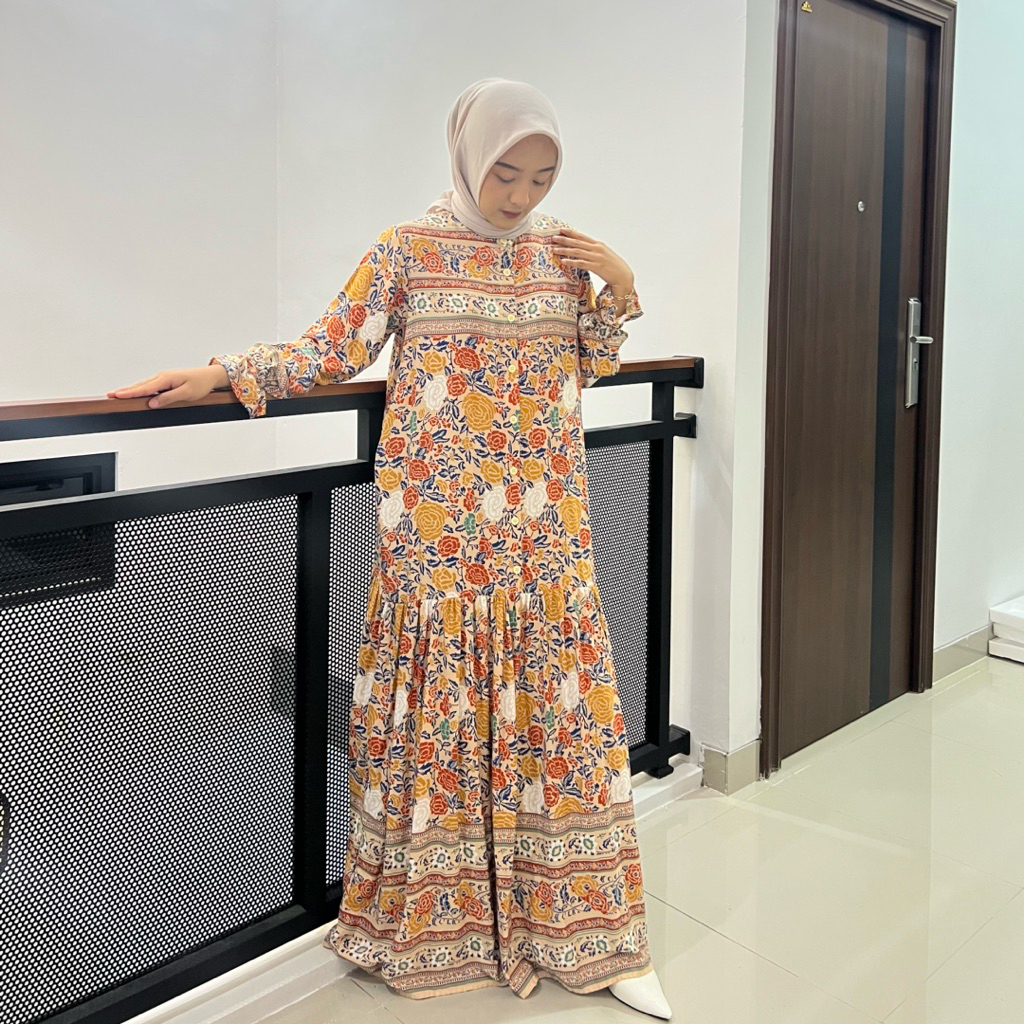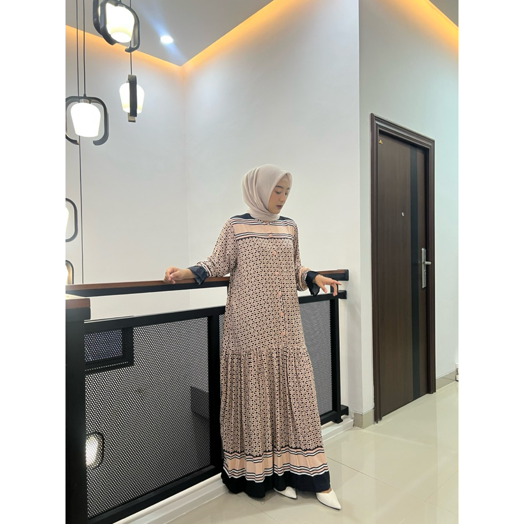 Gamis Wanita Aleya Dress Rayon Motif Gamis Rempel Kancing Wanita