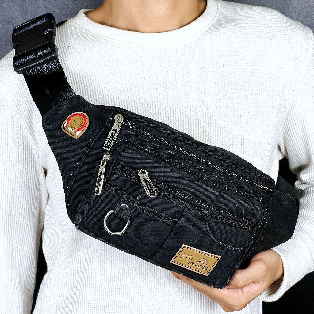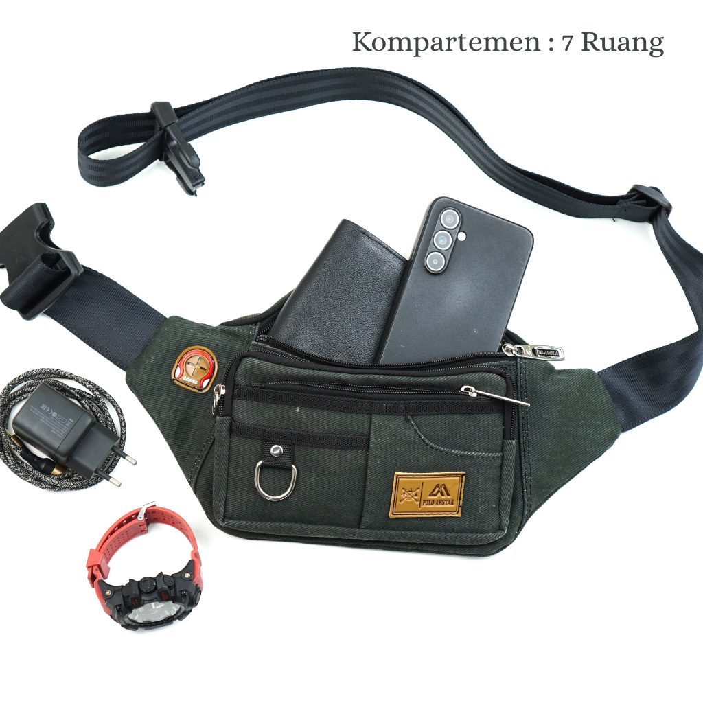 Tas Selempang Pria POLO AMSTAR Canvas Waistbag Slingbag Kanvas Tas Pinggang Cowok Casual Multifungsi