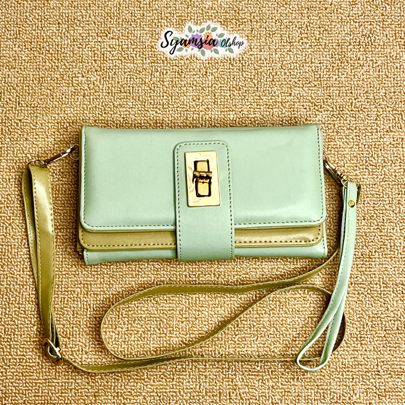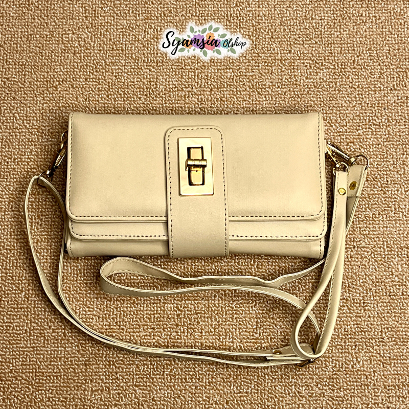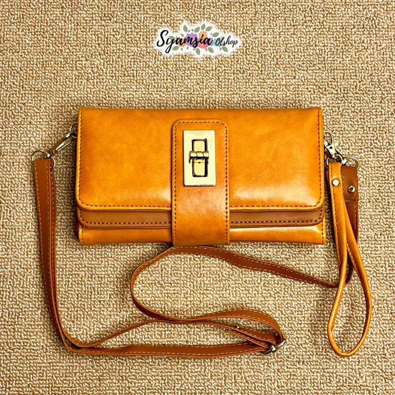 Dompet Selempang Wanita Lipat Panjang Import kulit Premium Terbaru Kekinian muat HP 6 Slot Kartu