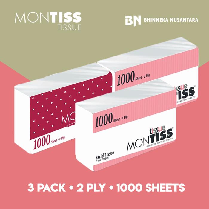 [3 PACK] MONTISS FACIAL TISSUE / TISU 1000 SHEETS - MONTISS 1000 - 3 PACK