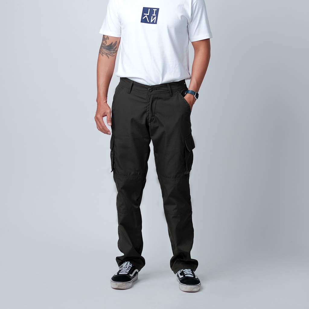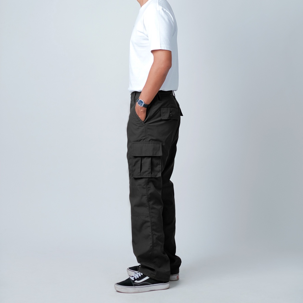 LIAN - Loosey Goosey Loose Cut Long Cargo Pants Mid Night Black Ripstop