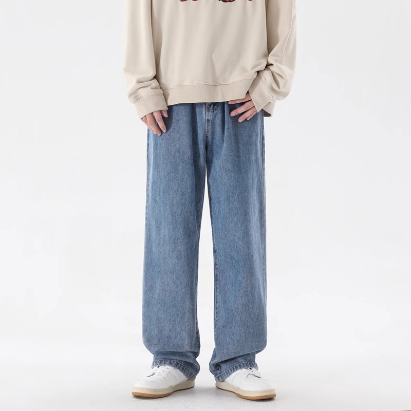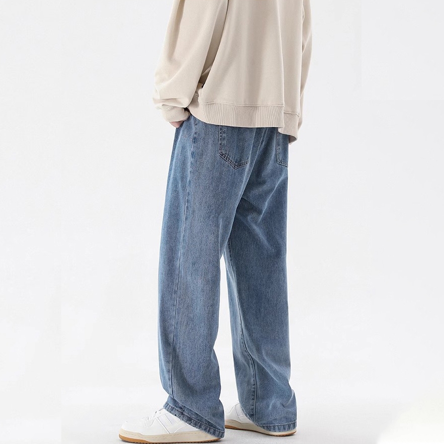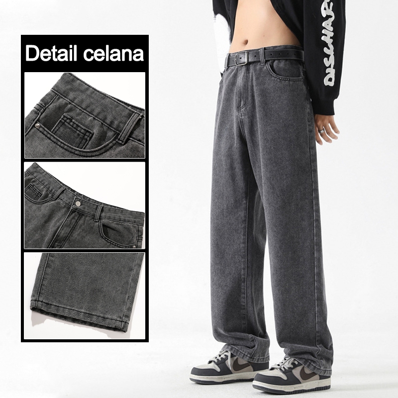 Celana jeans standart jeans regular pria hitam basic Celana panjang Mode Longgar Celana Jeans Jumbo Pria