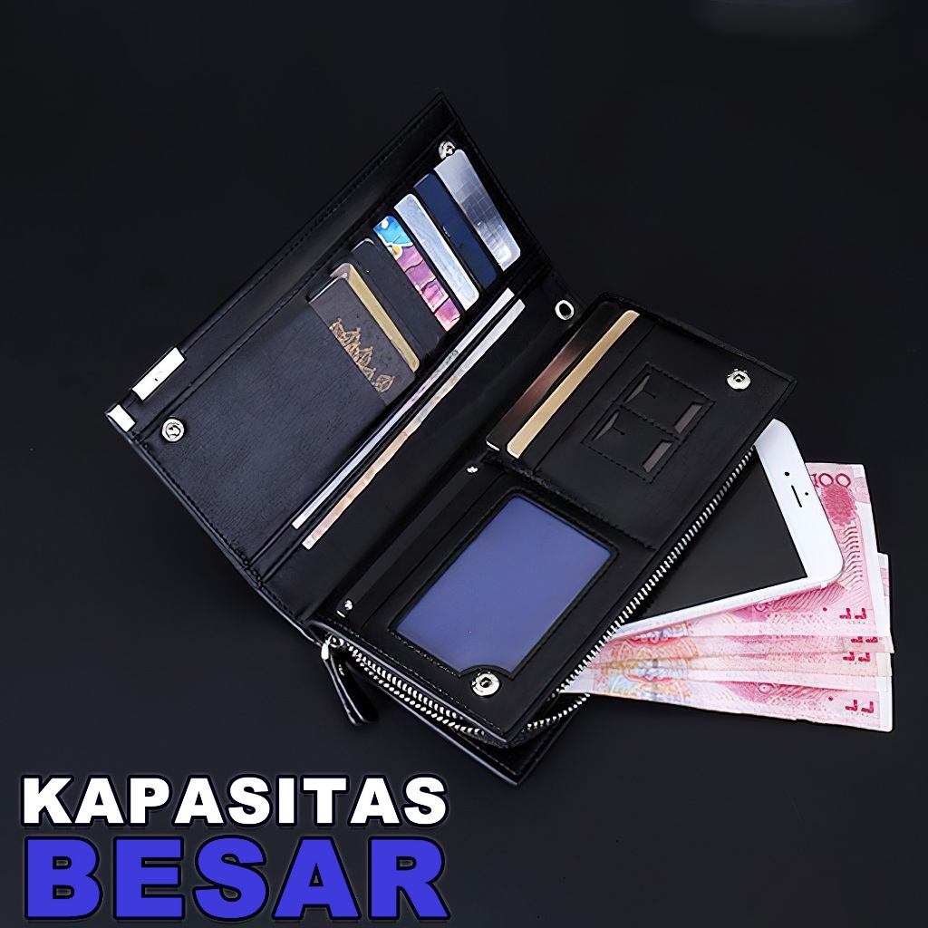Dompet Panjang Import Pria Slot Dompet Kulit PU Lipat Fashion Pria Resleting Terbaru - BY 012