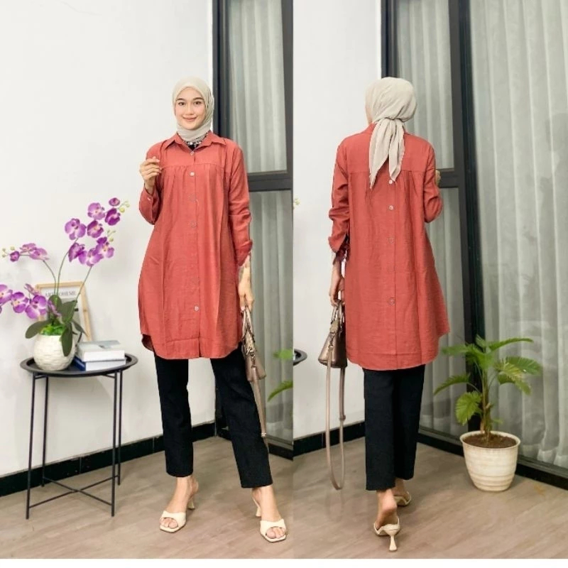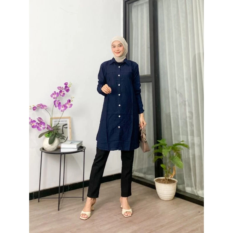 Baju Tunik Wanita Polo Linen Variasi Kancing Belakang By Zeva