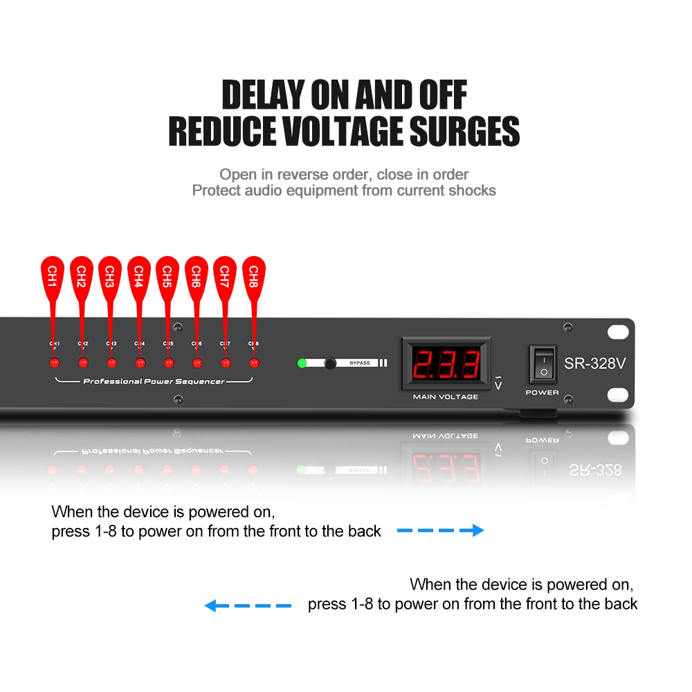 Pengurus kuasa NEW BAXS SR-328/SR-328V 8-channel 40 amp power controller Audio system power timing is applicable to stage socket controller Central control power sequencer