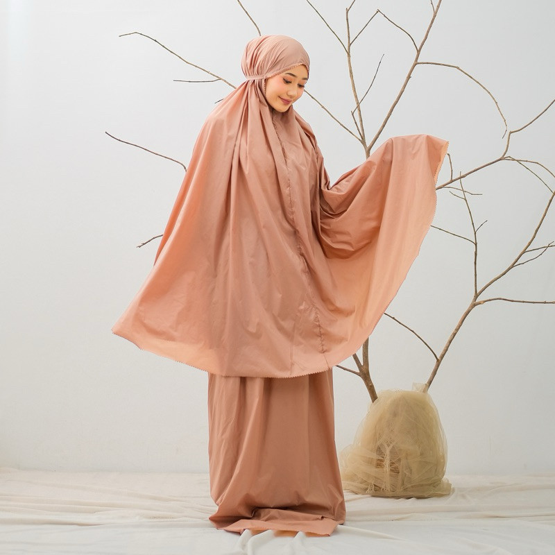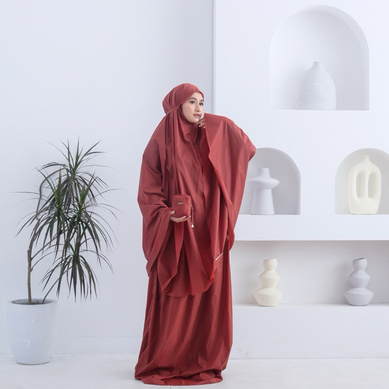 Mukena Mini Travel Caspia Series Parasut Korea Premium Jahit Tepi Resleting Dagu Tas Bulat