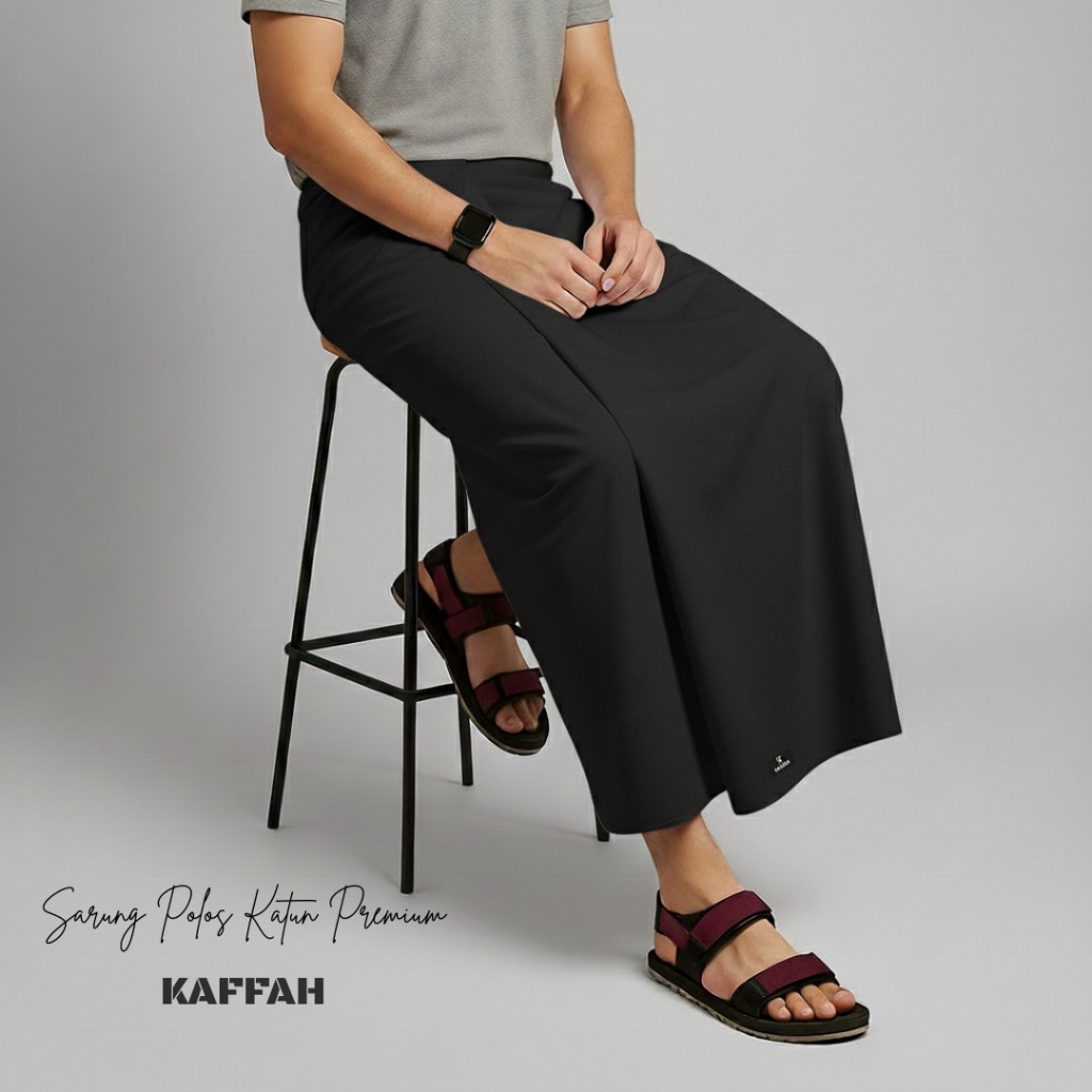 Sarung Polos Hitam Katun Premium Kaffah - Nyaman Lembut Halus Tidak Mudah Kusut - Alat Sholat Pria