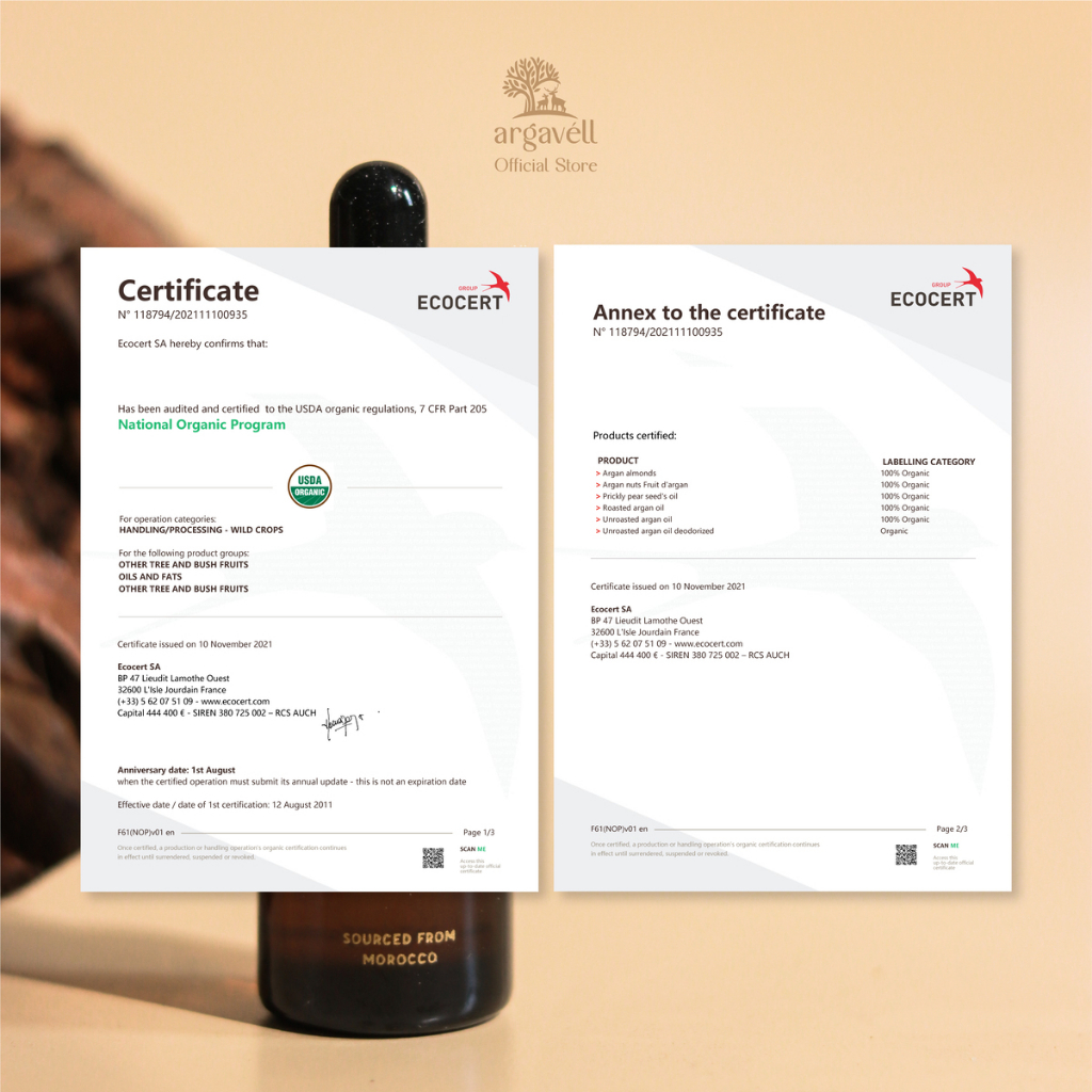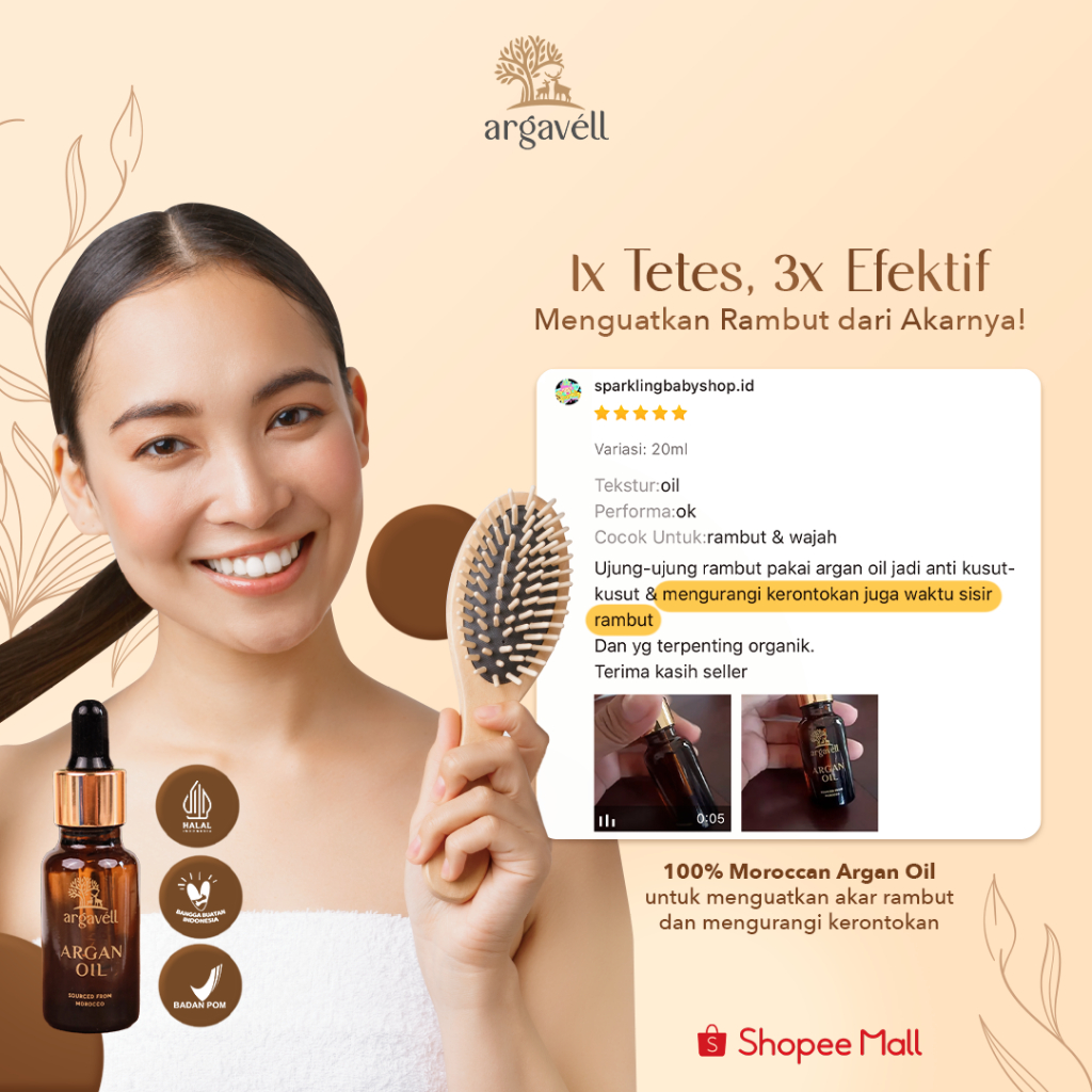 Argavell 100 PERSEN Organic Argan Oil Asli Morocco | Serum Vitamin Rambut Kering & Kusut | Auto Lembut, Kilau, Gampang Diatur