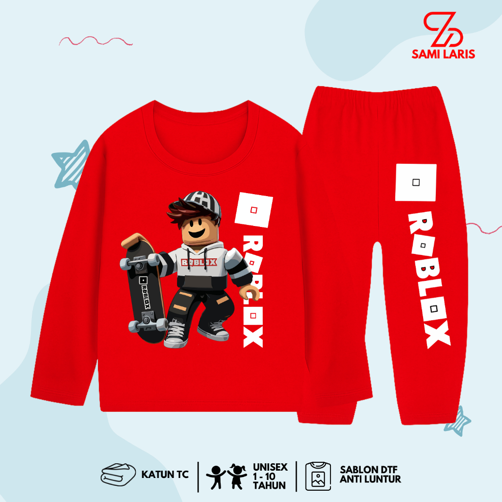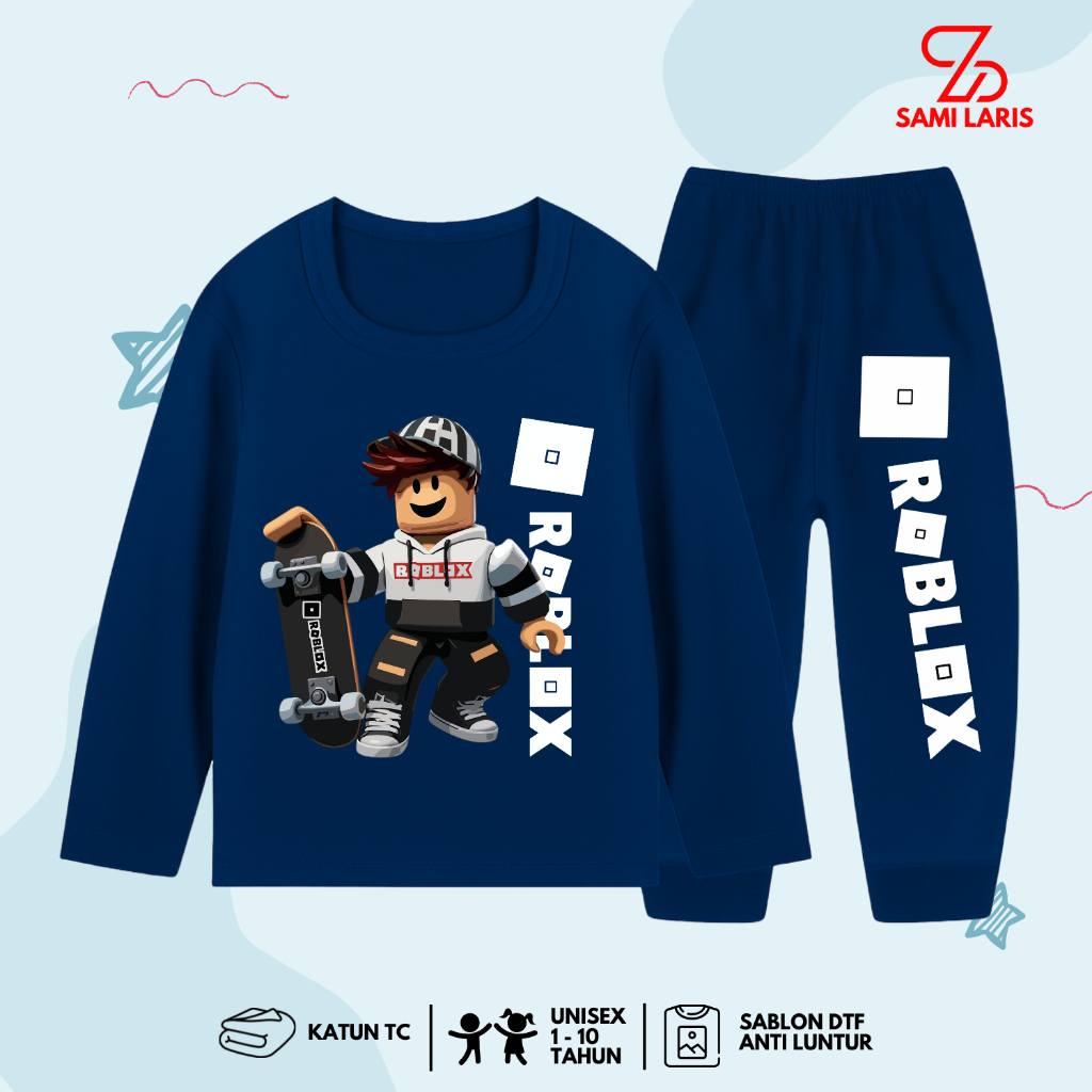 Setelan Panjang Roblox Anak Laki Laki Piyama Baju Tidur Motif Skateboard Keren Usia 1 - 10 Tahun