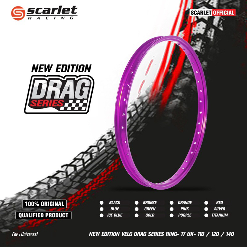 Velg Almu Scarlet Drag series ring 17 lebar ukuran 110 120 140 160 new edition Drag 12 warna setiap pembelian 1 set / 2 pcs bonus t’shirt Scarlet edisi Drag Series