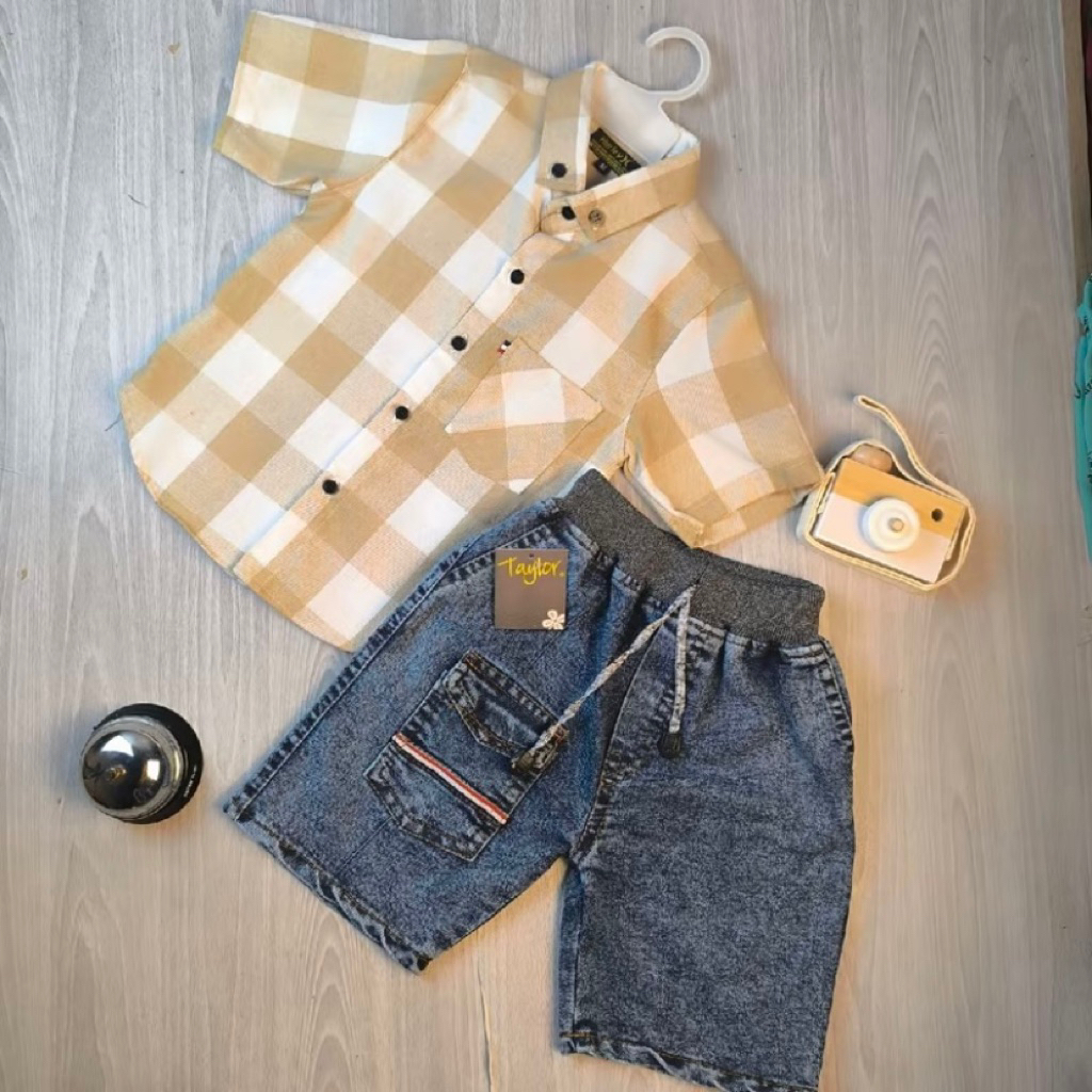 Stelan Kemeja flanel anak Setelan kemeja kotak-kotak anak usia 1-9 Tahun bahan katun