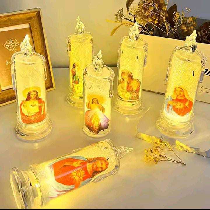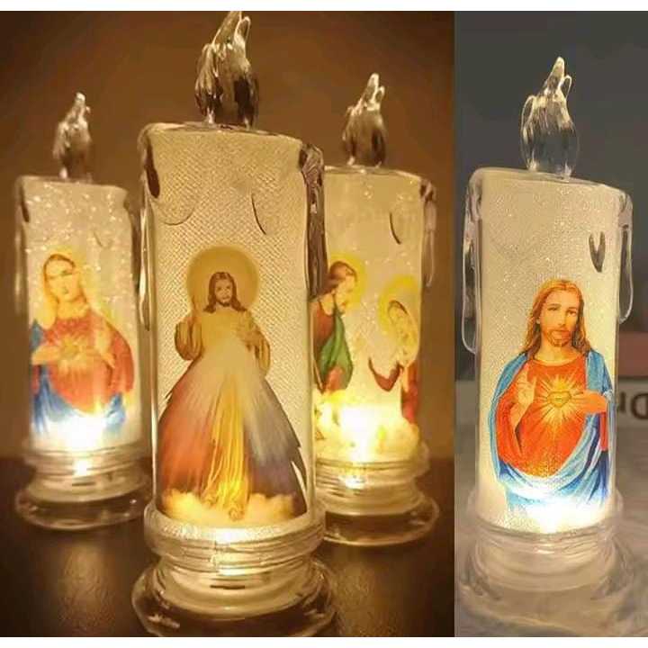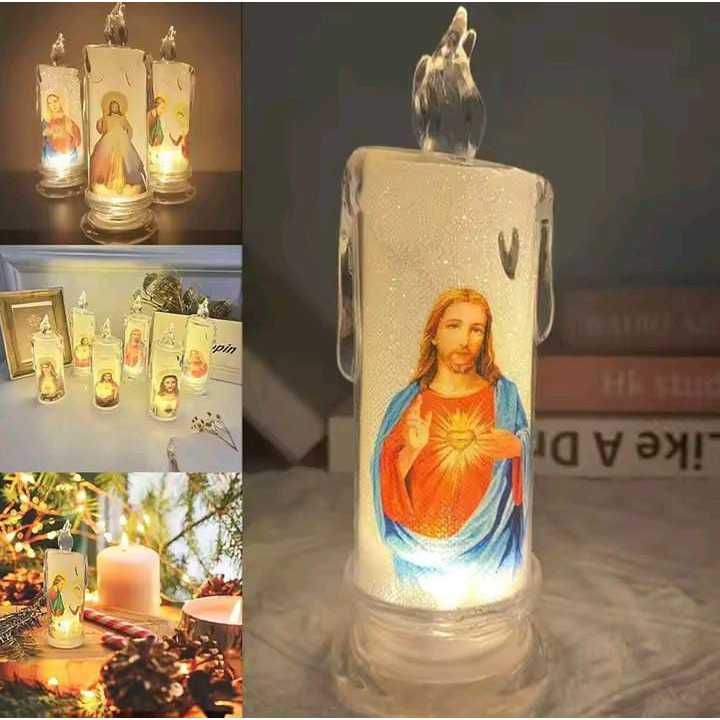 Lilin LED Elektrik 15cm Tears Candle Christmas Lamp Motif Tuhan Yesus Bunda Maria Dekorasi Hiasan Natal