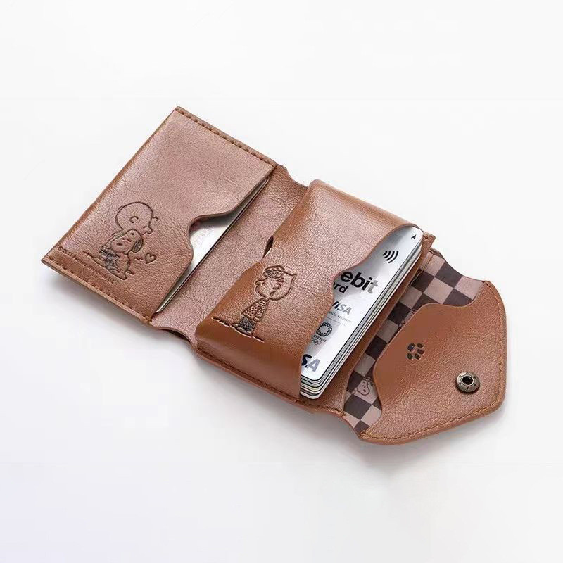 Dompet Mini Kartun Snoopy Gaya Jepang, Dompet Lipat Tiga Pendek Dengan Tekstur Premium
