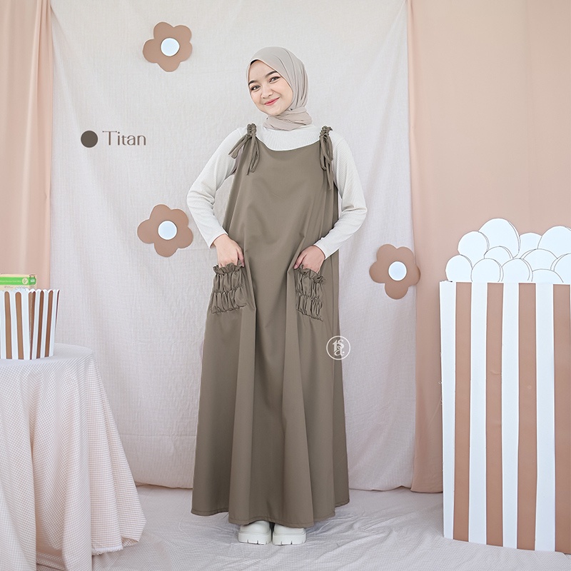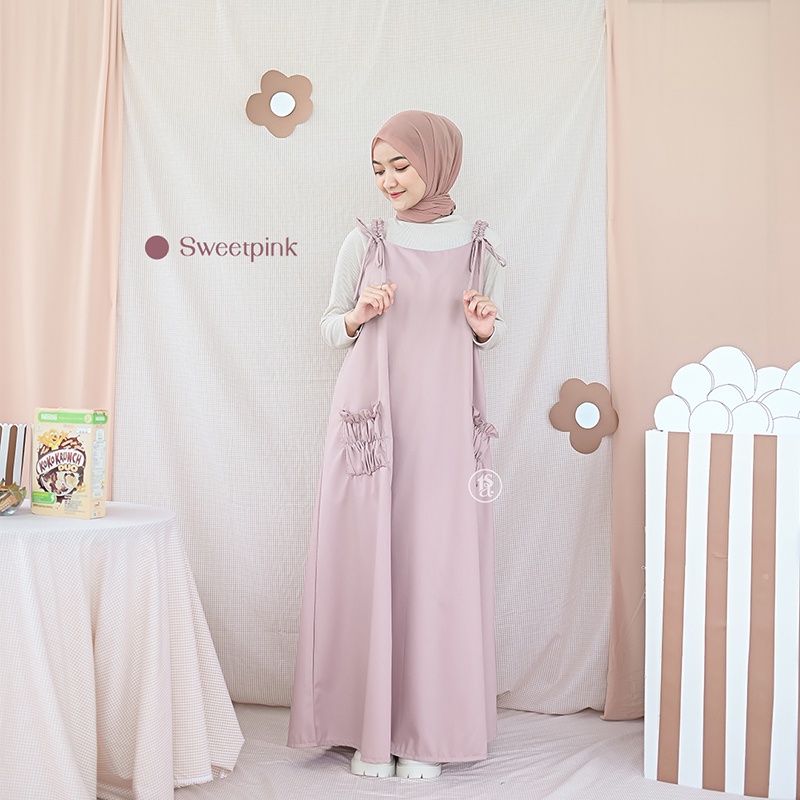 Tsabine - (Overall Saja) Keiko Overall Gamis Wanita Baju Kodok Katun Polos Korean Style