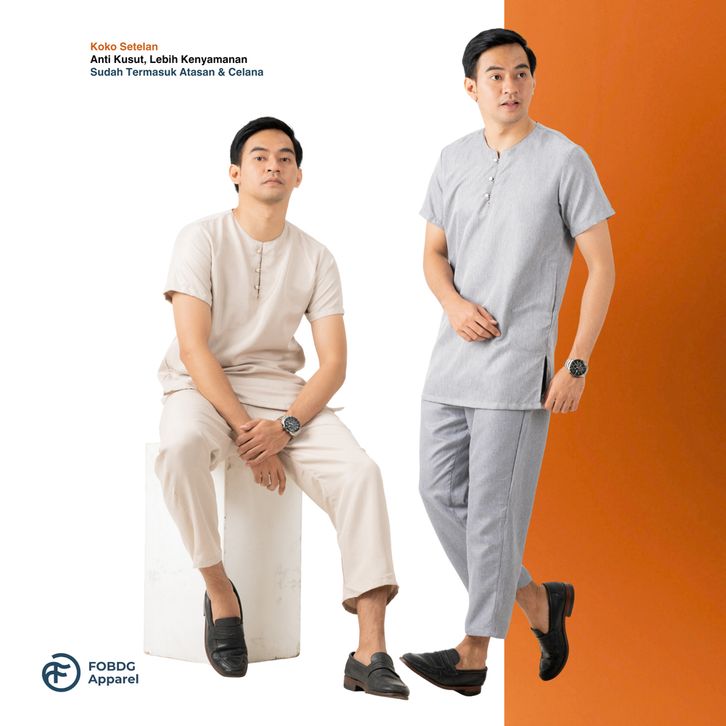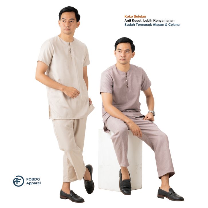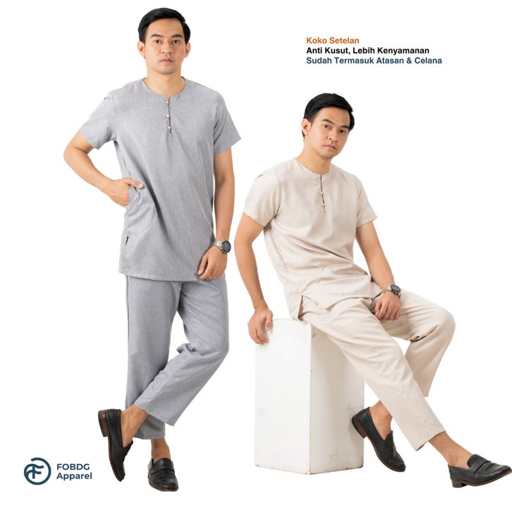 Fobdg Koko Setelan Borneo Pria Lengan Pendek Sudah termasuk Baju Atasan dan Celana